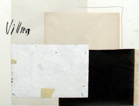 Beiläufige rote Huscher und feine Farbspritzer sind verzahnt mit einem sanften gelben Feld oder der soliden Ruhe einer Packpapieroberfläche; Formen von Pflanzen und Ausrisse aus der Zeitung, scharf umrissene und unkenntlich gemachte Gestalten durchdringen einander. Das Ganze besteht aus unzähligen großen und kleinen Elementen, die sperrig und eigenwillig in alle Richtungen drängen, ohne deswegen aus der Ordnung zu fallen. Alles ist mit allem verbunden und verklebt, ein bewegtes Gefilde unendlicher Möglichkeiten und zusammengehörender Gegensätze voller Fraglichkeiten und voller Poesie.